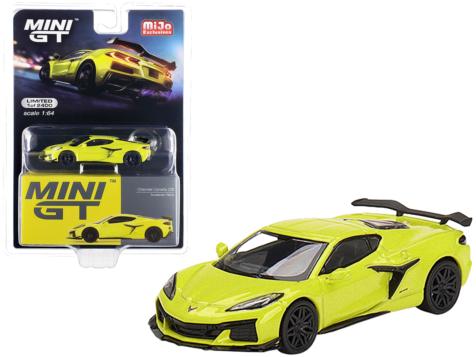 • Brand new 1/64 scale diecast car model of 2023 Chevrolet Corvette Z06 Accelerate Yellow Limited Edition to 2400 pieces Worldwide die cast model car by True Scale Miniatures.