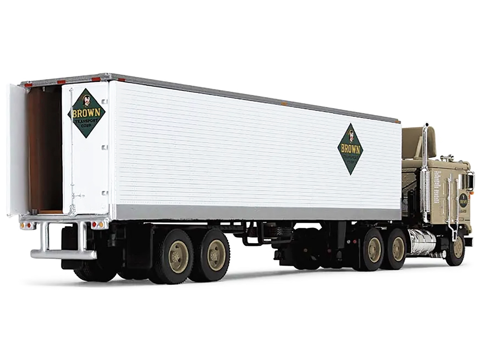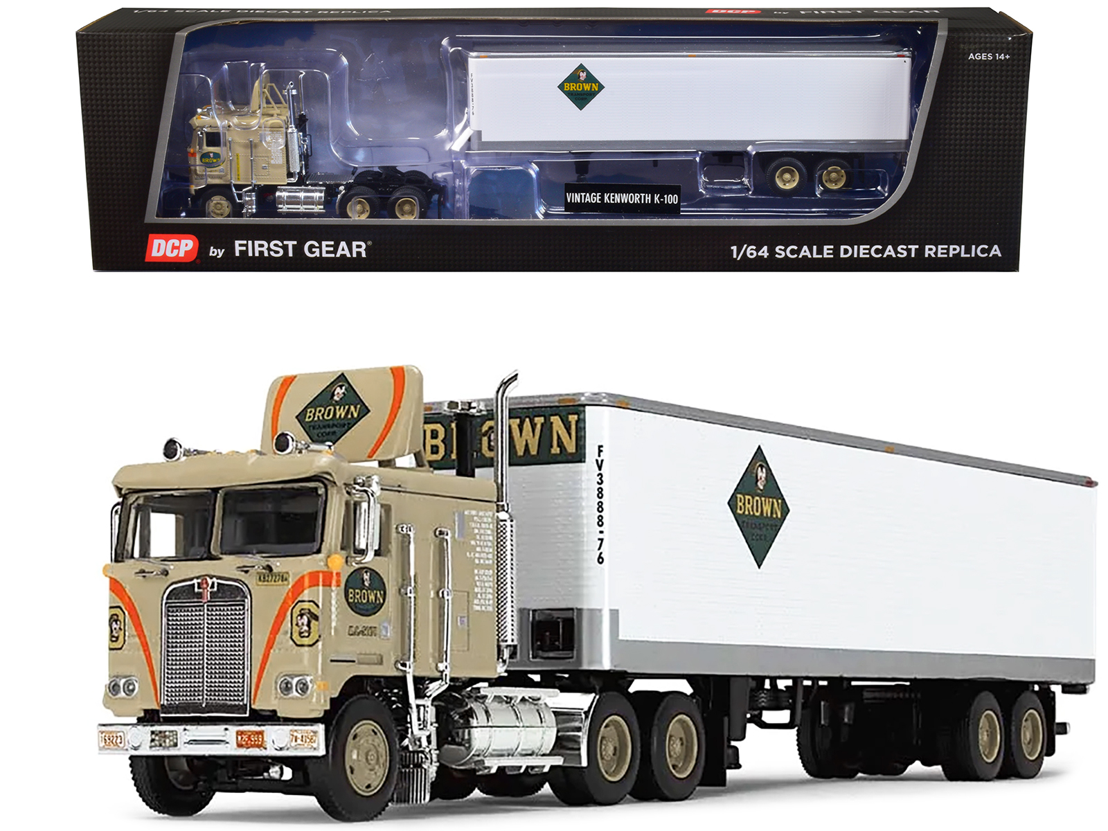 - Brand new 1/64 scale diecast model of Kenworth K100 COE with 40′ Vintage Dry Goods Trailer “Brown Transport Corp” Light Brown “Fallen Flag” Series die cast model by DCP/First Gear.